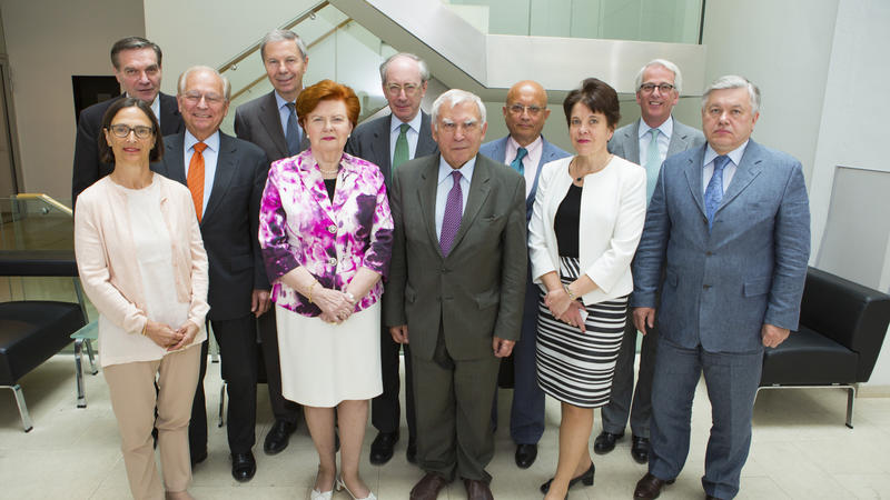 Vaira Vike-Freiberga, former President of Latvia (l) and Sergey Karaganov of the Russian Federation at an event on the final recommendations of the Panel of Eminent Persons on European Security as a Common Project, on the margins of the 52nd Munich Security Conference, 14 February 2016.