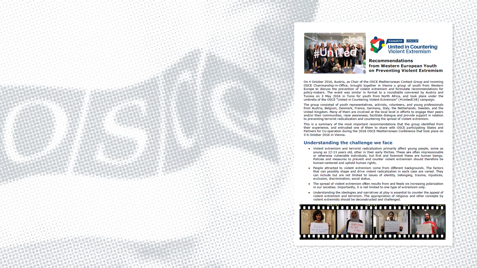 This is the summary of the most important recommendations that the workshop participants from Western Europe, the Black Sea region, the Western Balkans and Central Asia identified from their experience on preventing violent extremism.