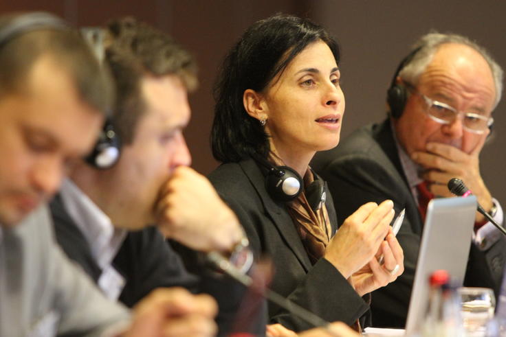 المشاركون في جلسة عمل حول العدالة والإصلاح القانوني بمؤتمر منظمة الأمن والتعاون في أوروبا الخاصّ بالدول المتوسطية الشريكة في مجال المجتمع المدني، فيلنيوس، ليتوانيا، 4 ديسمبر/كانون الأول لعام 2011. (منظمة الأمن والتعاون في أوروبا / فيليمير آليتش)