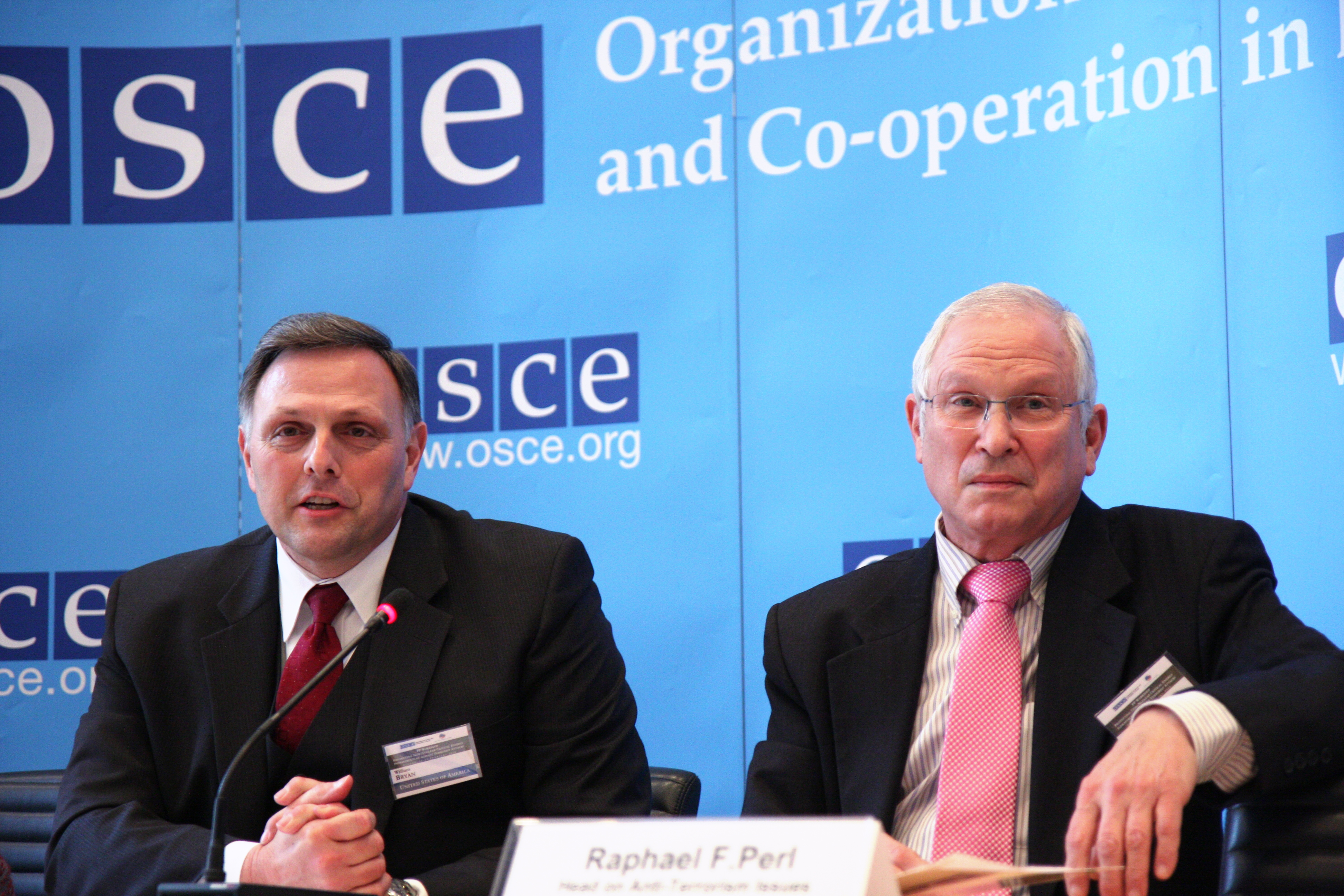 William Bryan, Deputy Assistant Secretary for Infrastructure Security and Energy Restoration at the U.S. Department of Energy, and Raphael Perl, OSCE Head on Anti-Terrorism Issues, at a news conference. Vienna, 11 February 2010.