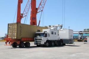 A container being screened by the Batumi port authorities in Georgia