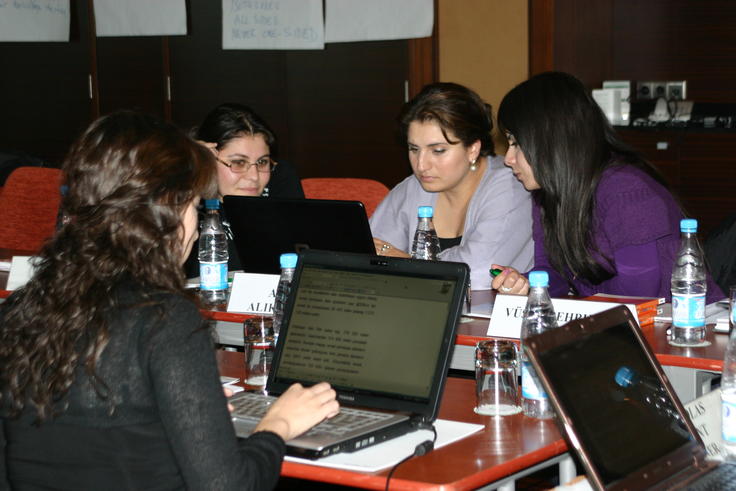 Azerbaijani journalists take part in practical exercises during a three-day training session organized by the OSCE Office in Baku, 9 December 2009.