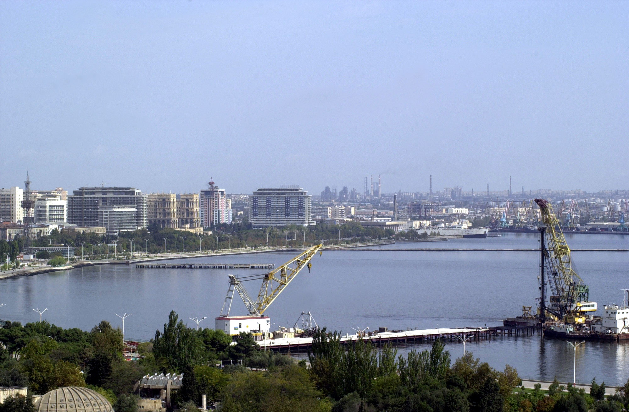 Baku, a large port city on the Caspian Sea, is Azerbaijan's capital and largest city.