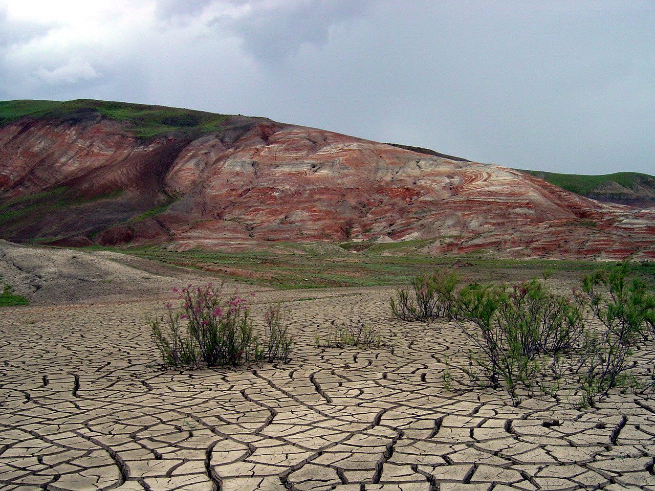 A view of the so-called "The Candycane Mountains" in Azerbaijan's countryside, where a range of low hills is marked by a multitude of colours, produced by ground waters that have altered the oxidation state of the iron compounds in the earth.