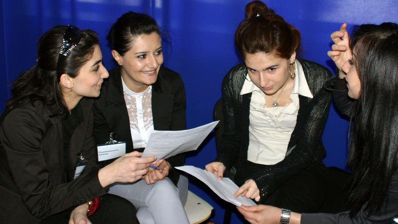 Participants at the first national Model OSCE held by the OSCE Office in Baku discuss a draft ministerial decision, Baku, 9 May 2010.