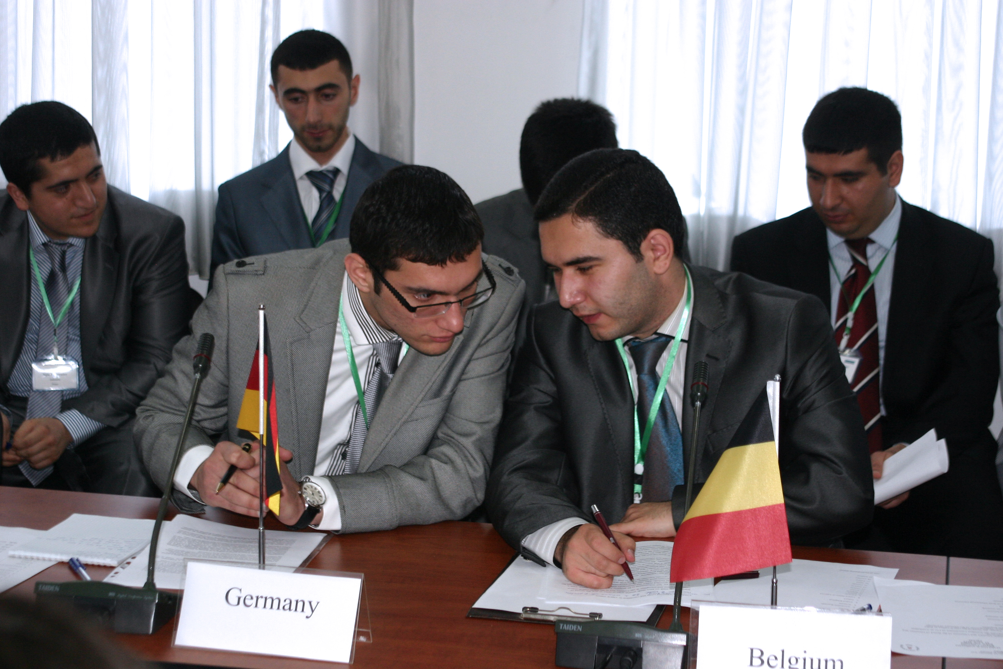 Alibaba Mammadov (r) from Khazar University represented Belgium at the seminar, Baku, 22 April 2012.