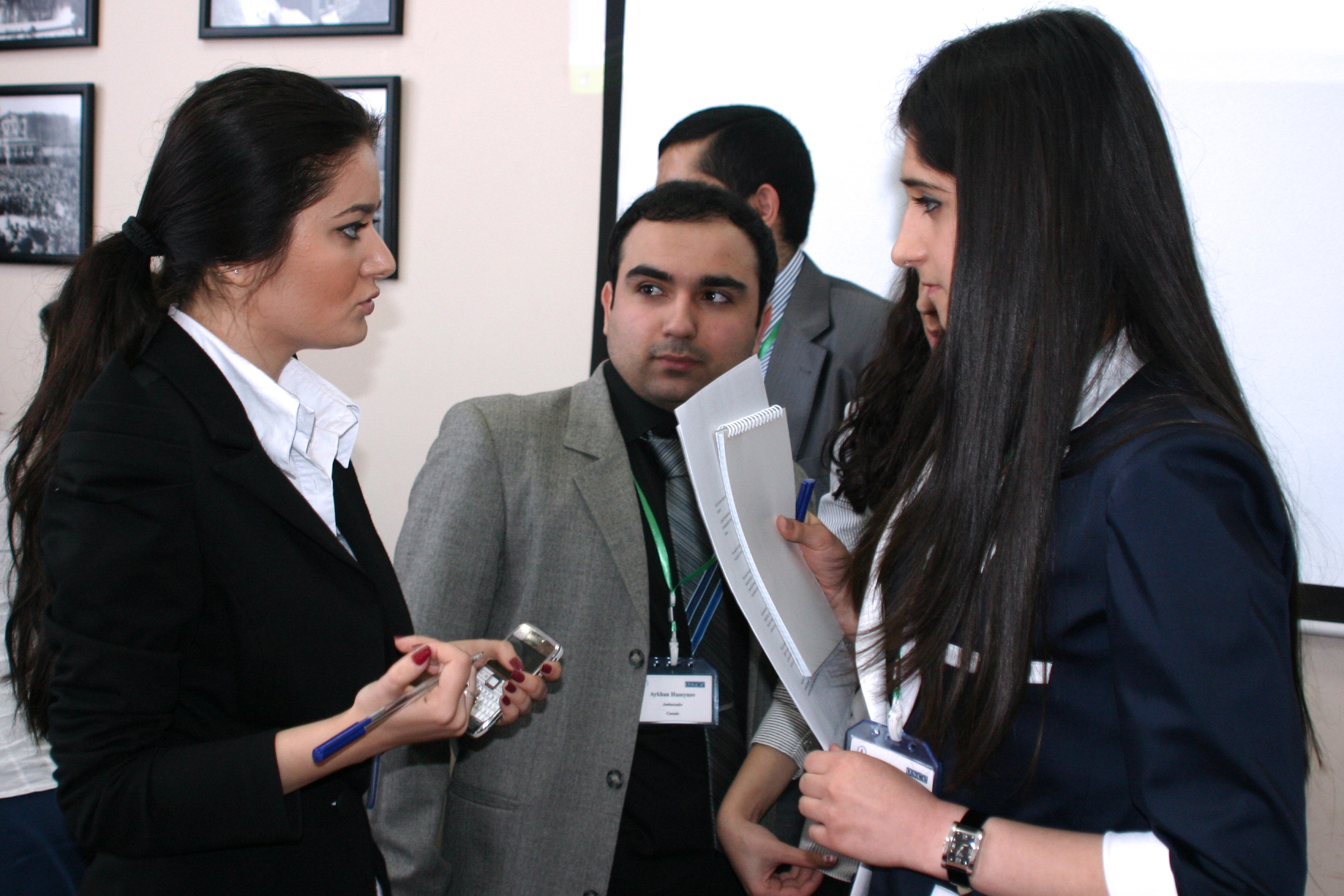Turana Gasimova (l) from the Baku State University represented the Irish Ambassador at the conference, Baku, 22 April 2012. She opened the session by giving the floor to ambassadors and asked them to make key suggestions that would be included in the forum's final draft.