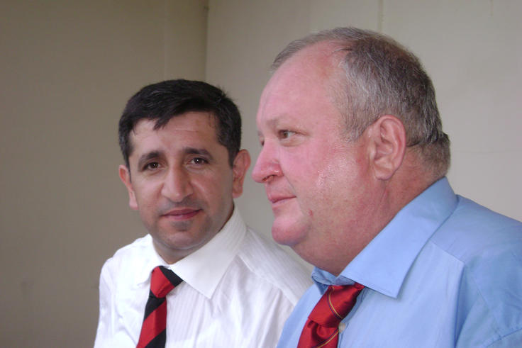 Police experts Abdulkadir Yashar (left) and Andras Hugyik conduct training sessions for police from Mingechevir and Shirvan as part of an OSCE community policing project in Azerbaijan, 30 June 2008.