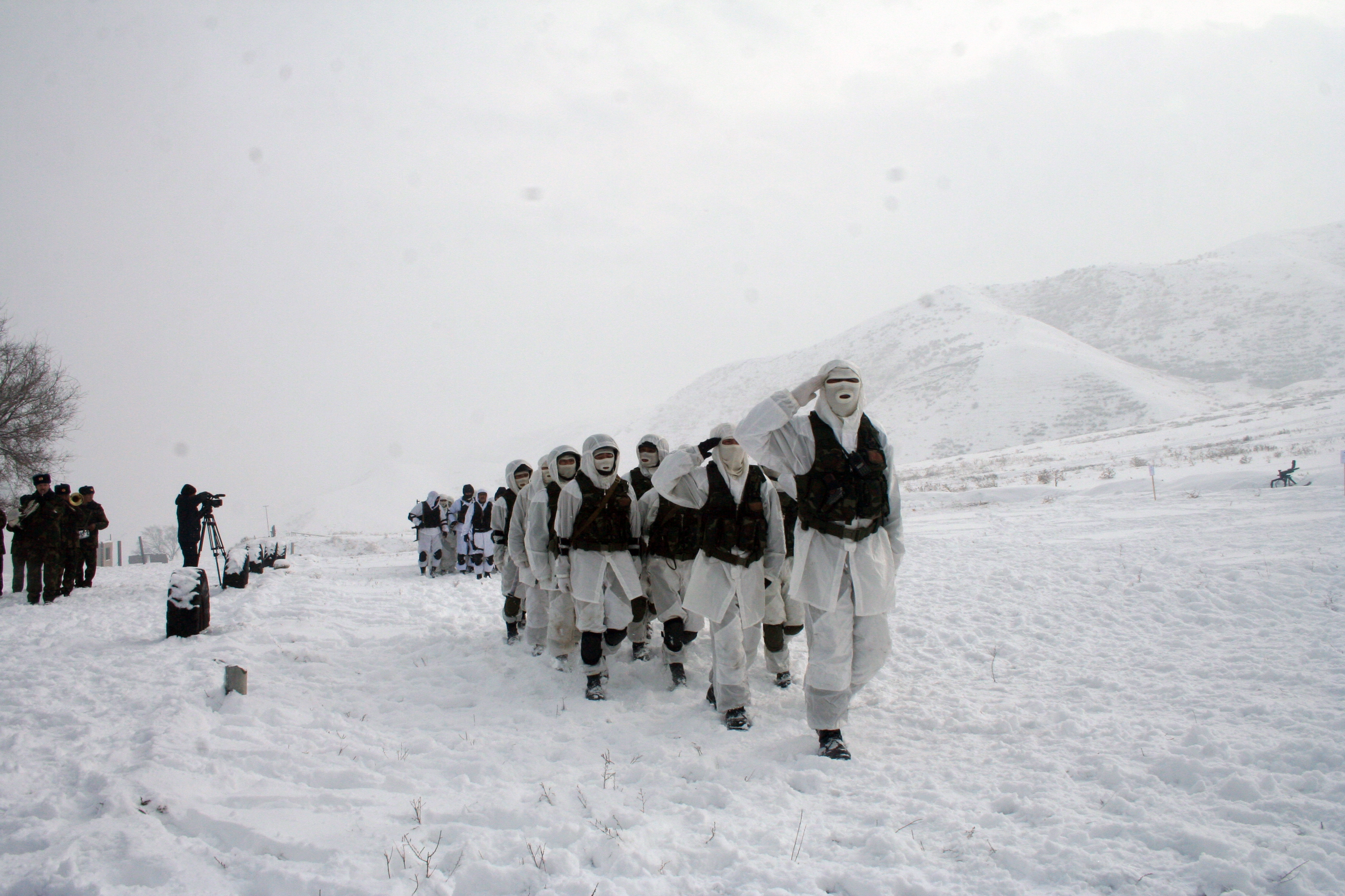 Kyrgyz officers at the official opening of a field bomb disposal training facility in Kara Jigach village, refurbished with the support of the OSCE Centre in Bishkek, 6 February 2010.