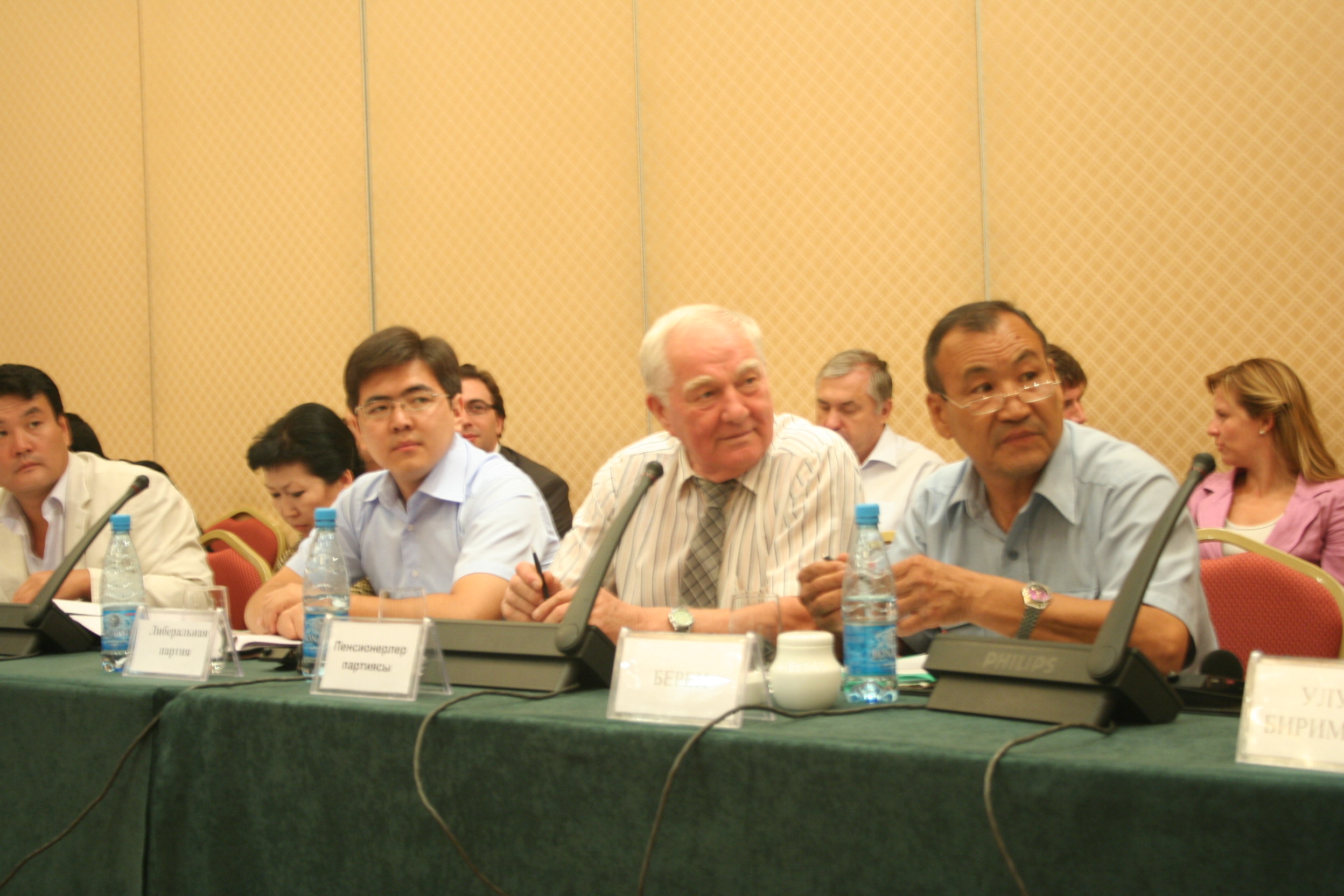 Members of Kyrgyzstan's political parties watch as other parties sign an OSCE-supported Code of Conduct in the run-up to the 10 October election, Bishkek, 11 August 2010.
