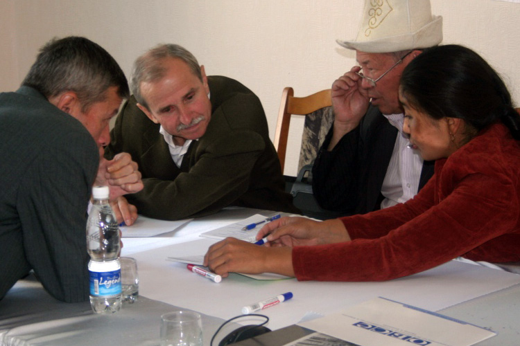 Participants at a workshop for journalists on responsible reporting on political and inter-ethnic issues, Osh, 4 October 2010.