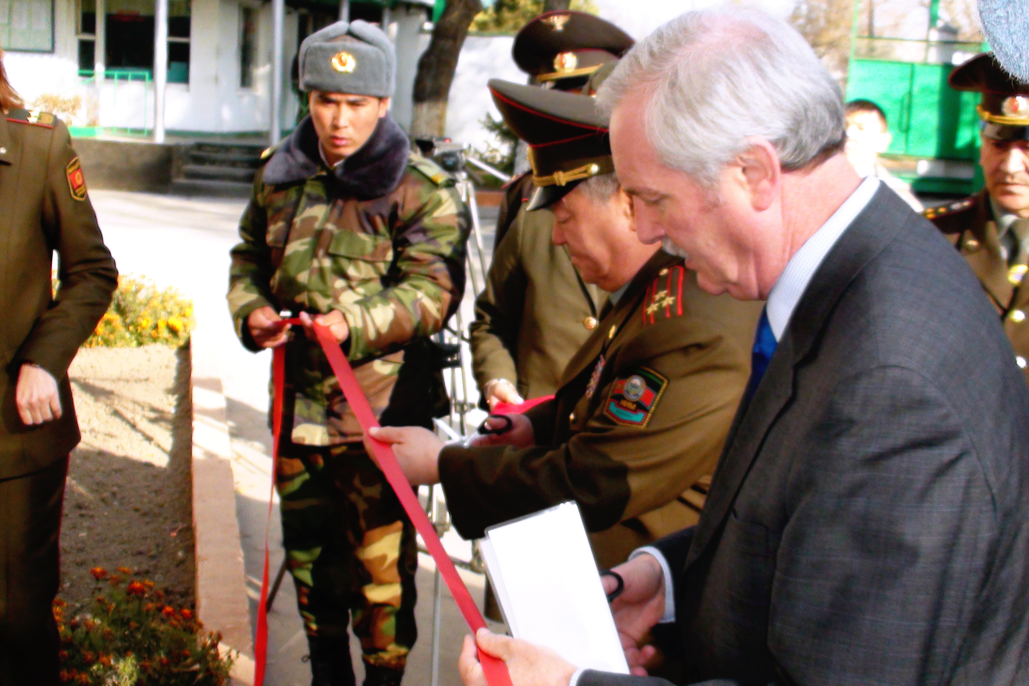 Ambassador Andrew Tesoriere, Head of the OSCE Centre in Bishkek, participates in the ribbon-cutting ceremony at the opening of a new training centre for prison staff, Bishkek, 18 November 2010.