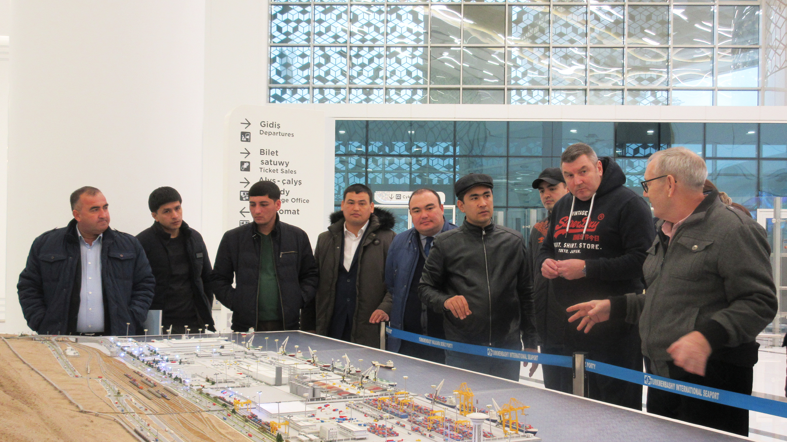 Participants visit the Turkmenbashi International Seaport during the OSCE-organized training course on port security management and procedures, 21 December 2018