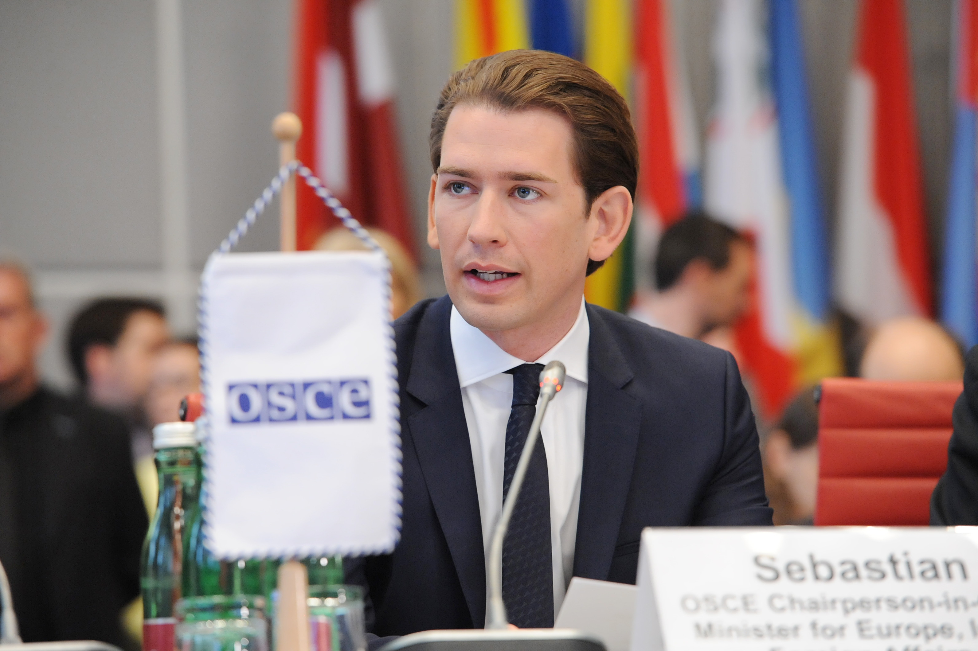 OSCE Chairperson-in-Office and Austria's Foreign Minister Sebastian Kurz during the opening session at the OSCE-wide Counter-Terrorism Conference 2017, 23 May 2017.
