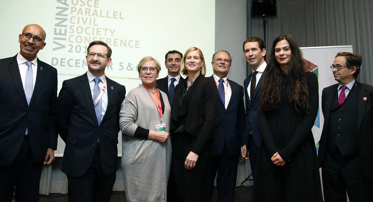 Participants at the closing session of the Parallel Civil Society Conference held on the eve of the 24th OSCE Ministerial Council, Vienna, 6 December 2017.