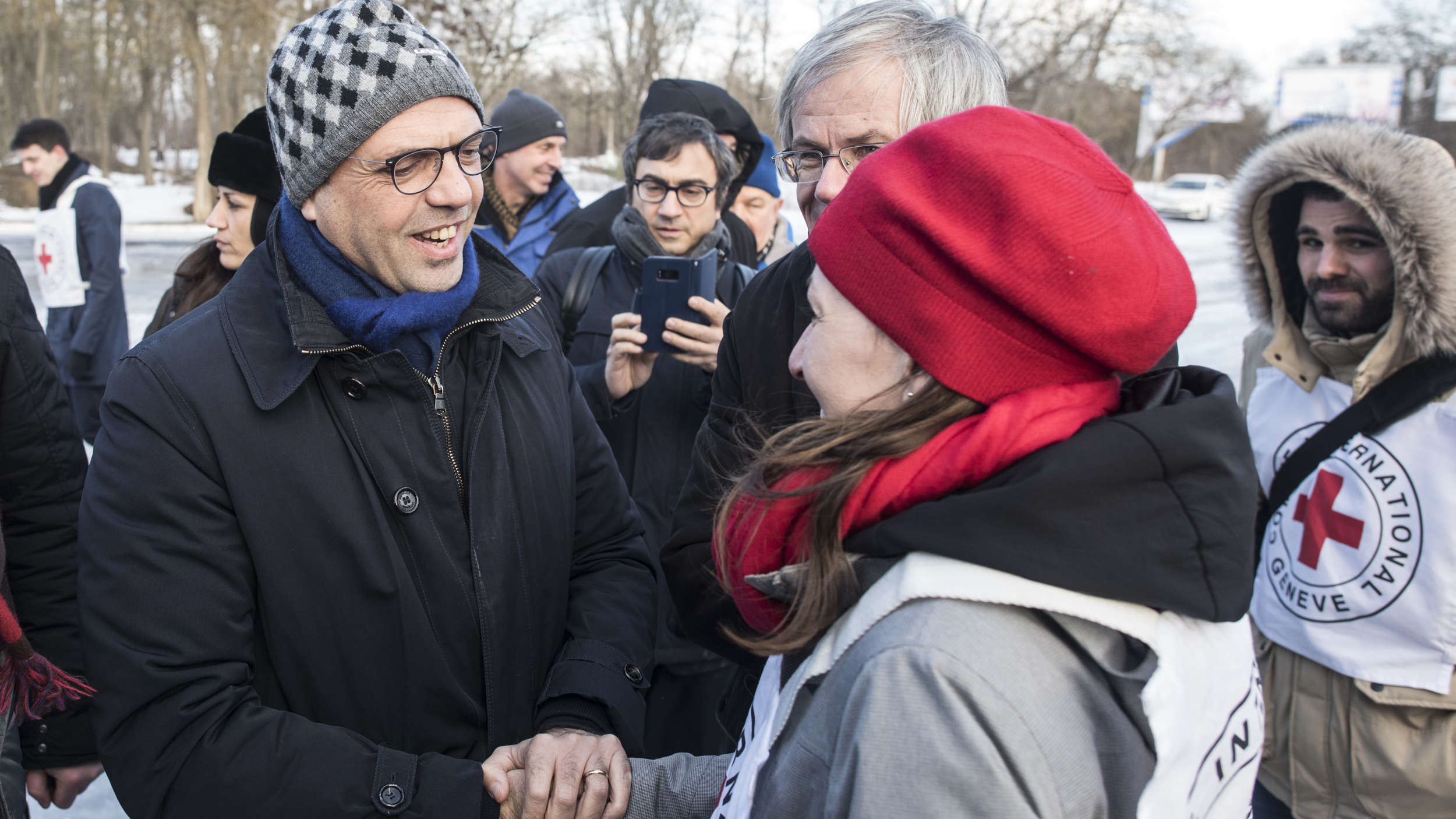 OSCE Chairperson-in-Office Angelino Alfano during his visit to Ukraine, Mariupol, 31 January 2018.