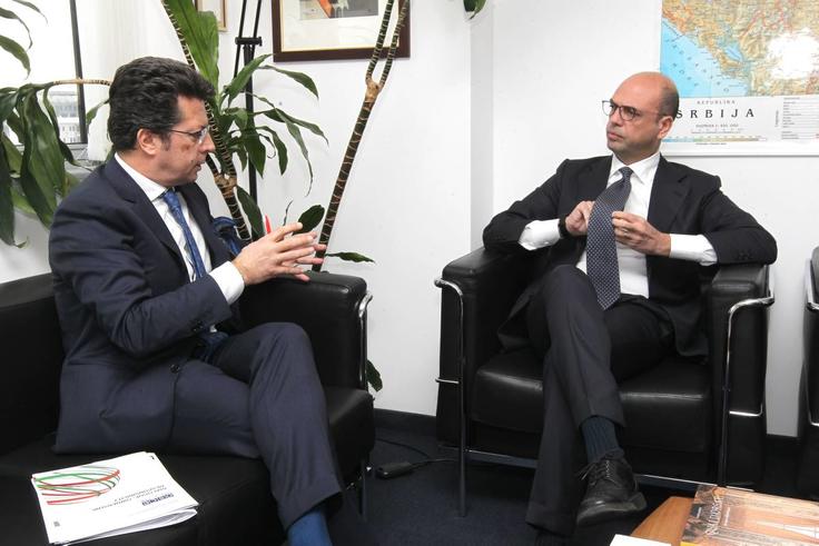 Angelino Alfano (r), OSCE Chairperson-in-Office, Italy’s Minister of Foreign Affairs during a meeting with Ambassador Andrea Orizio, Head of the OSCE Mission to Serbia, Belgrade, 27 February 2018.