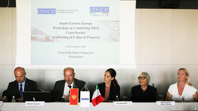 The workshop, the third held as part of an OSCE project on this issue, was organized by the Italian OSCE Chairmanship in co-ordination with the Border Security and Management Unit of the OSCE Transnational Threats Department, the OSCE Mission to Montenegro and the Ministry of Culture of Montenegro. It follows similar workshops held in the past in Vicenza, Italy for the Mediterranean region and in Tashkent, Uzbekistan for the Central Asian region.