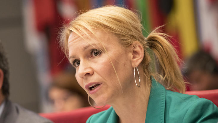 Kaari Mattila, Secretary-General of the Finnish League for Human Rights, addresses the Supplementary Human Dimension Meeting on Human Rights and Education, Vienna, 8 October 2018.