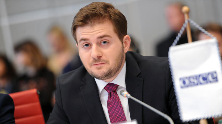 Gent Cakaj, Albanian Acting Minister for Europe and Foreign Affairs addresses the OSCE Permanent Council on the incoming Chair’s priorities, Vienna, 11 July 2019.