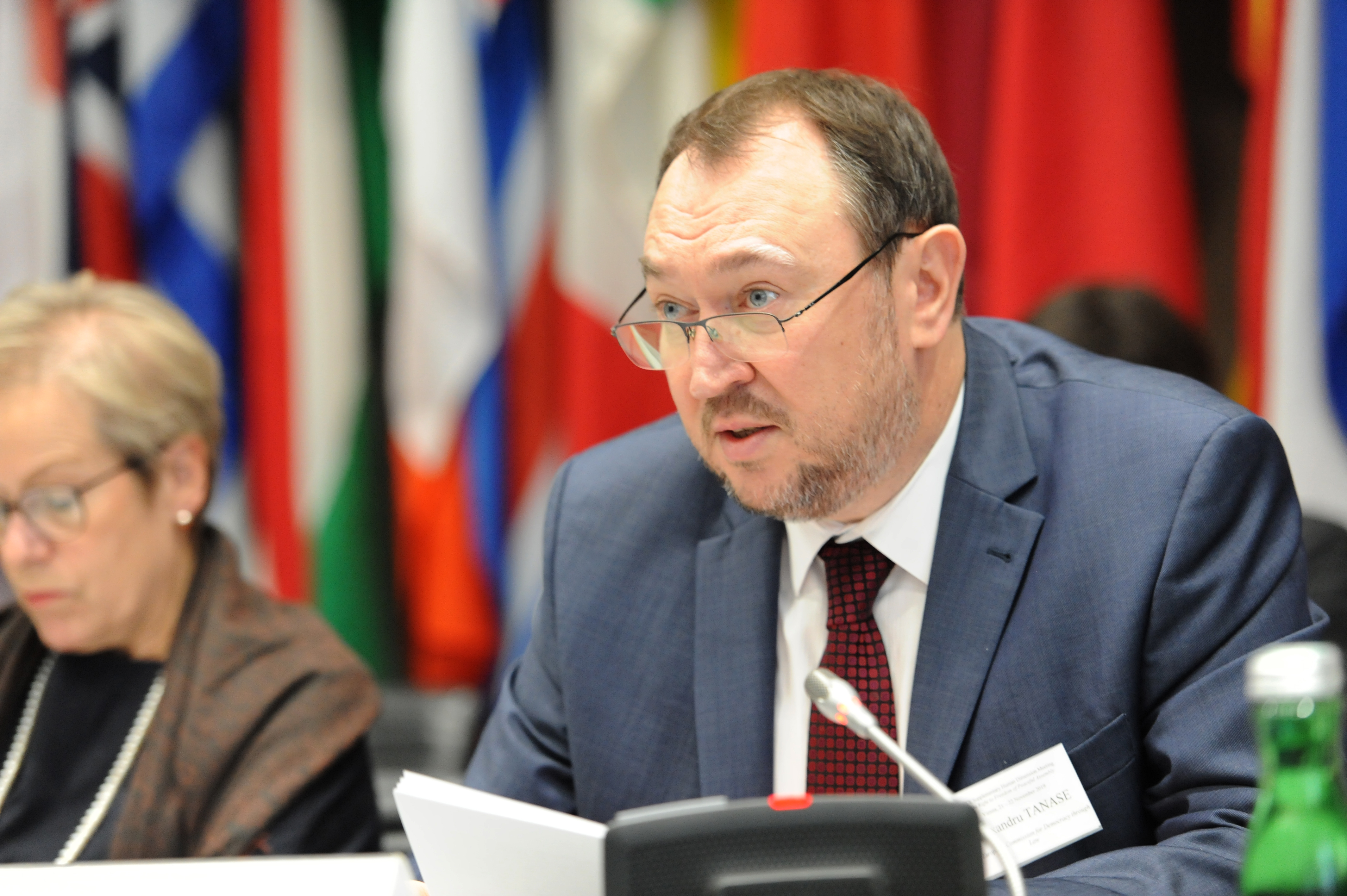 Alexandru Tanase, Member of the Council of Europe’s Venice Commission and a former Justice Minister and former President of the Constitutional Court of Moldova, addresses the Supplementary Human Dimension Meeting on the freedom of peaceful assembly, Vienna, 21 November 2019.