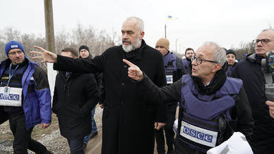 KYIV / STANYTSIA LUHANSKA, 21 January 2019 - OSCE Chairperson-in-Office, Prime Minister and Minister for Europe and Foreign Affairs of Albania, Edi Rama, today concluded a two-day visit to Ukraine. Rama called for strengthened efforts to find a peaceful resolution to the crisis in and around Ukraine, which he cited as the most pressing challenge to the security and stability in Europe today.