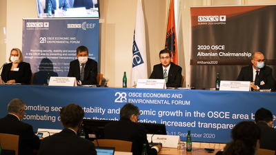 PRAGUE, 10 September 2020 – “Corruption shrinks tax revenue, distorts markets, hampers trade and investment and deepens inequalities. Every time illegal private gain wins out against the public good, it weakens our social fabric. Our objective is nothing short of zero tolerance for corruption,” said Albania’s Acting Minister for Europe and Foreign Affairs of Albania Gent Cakaj, while opening the 2020 OSCE Economic and Environmental Forum today in Prague.