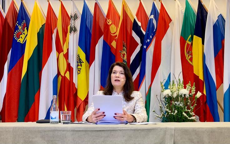 OSCE Chairperson-in-Office and Minister for Foreign Affairs of Sweden Ann Linde addresses the OSCE Permanent Council, 14 January 2021.