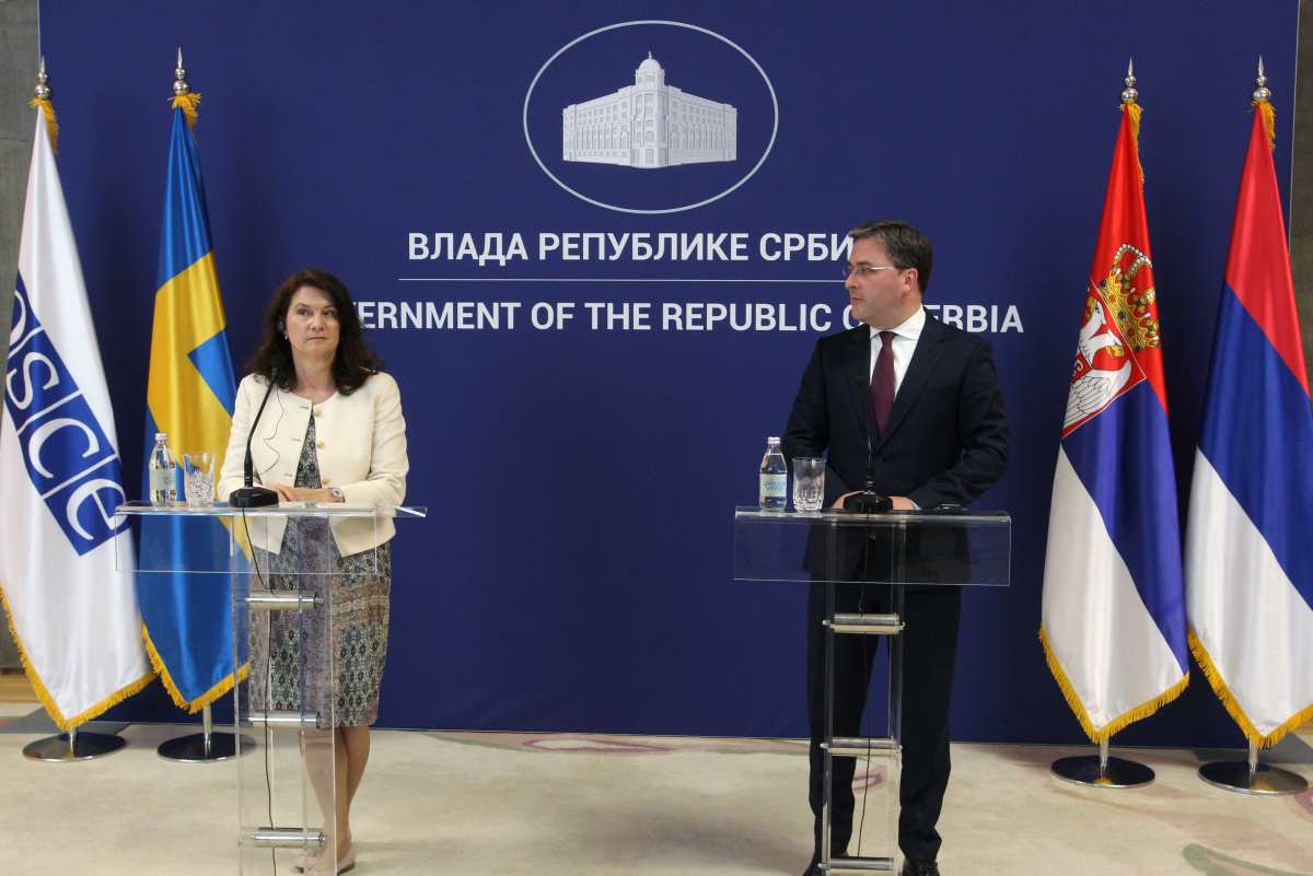 OSCE Chairperson-in-Office, Swedish Minister for Foreign Affairs Ann Linde and Serbia's Foreign Affairs Minister Nikola Selaković, 24 May 2021, Belgrade.