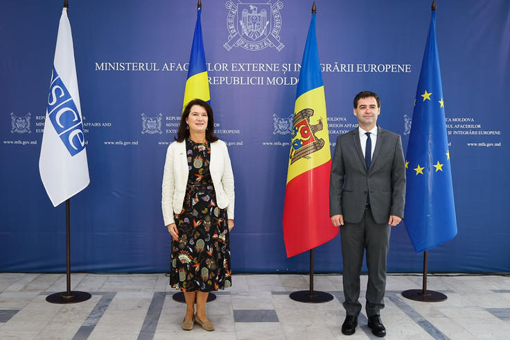 Ann Linde, OSCE Chairperson-in-Office, Swedish Minister for Foreign Affairs, and Nicu Popescu, Deputy Prime Minister and Minister of Foreign Affairs and European Integration of Moldova, during Chairperson Linde's visit to Moldova, 6 October 2021, Chisinau