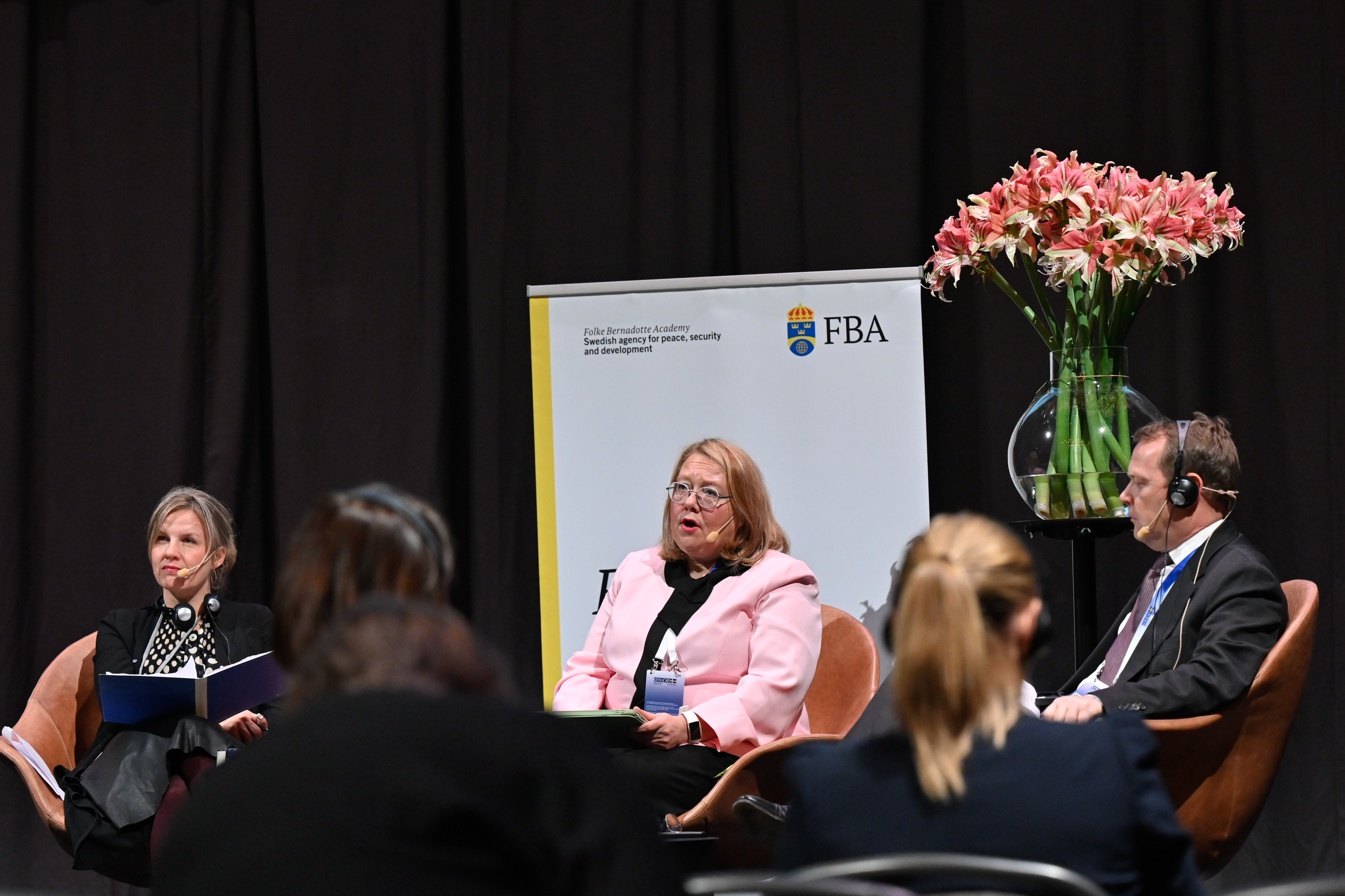 Panelists speak at the side-event on security sector governance and reform, Stockholm, 3 December 2021.
