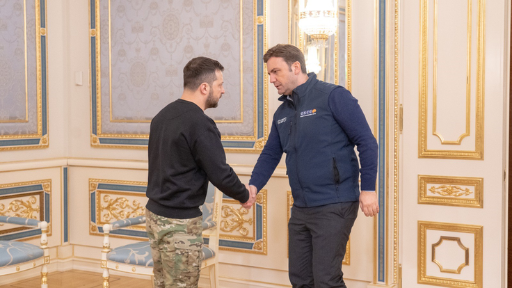 The OSCE Chairman-in-Office, Minister of Foreign Affairs of North Macedonia Bujar Osmani meets Ukrainian President Volodymyr Zelensky, Ukraine, 16 January 2023.
