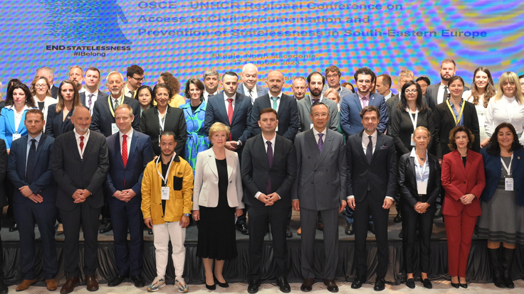 Participants attending the OSCE-UNHCR conference on preventing the statelessness and accessing the civil documentation in South-Eastern Europe, Skopje, 17 October 2023.