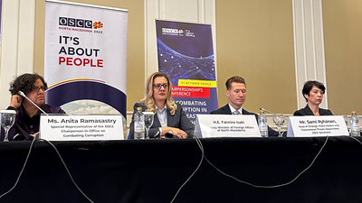 “This conference is particularly important as fighting corruption is a clear political priority for North Macedonia; fighting corruption brings our region together and proves that by working one with the other, we can do more and do better; and fighting corruption is one of the many added values that the OSCE brings to us and to our people, not least through the field operations all of our countries host,” said the Deputy Minister of Foreign Affairs of North Macedonia, Fatmire Isaki. “With its comprehensive approach to security, the OSCE is active in assisting participating States in combating corruption. Entering into today's specific topic, OSCE Ministerial Council decisions have repeatedly underlined the importance of addressing the financial side of all forms of crime, preventing transfers of the proceeds of crime and pursuing recovery of criminal assets,” she added.