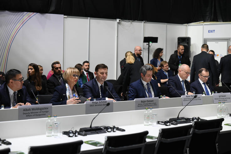 High-level panellists at the side event on addressing the impact of climate change that took place at the 30th Ministerial Council in Skopje, North Macedonia.