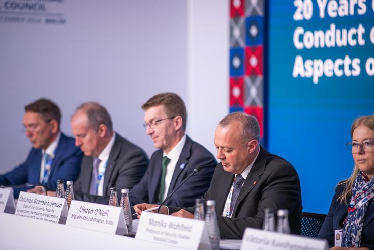 Panelists at the side-event on the 30th anniversary of the Code of Conduct at the 31st Ministerial Council in Malta, 5 December 2024.