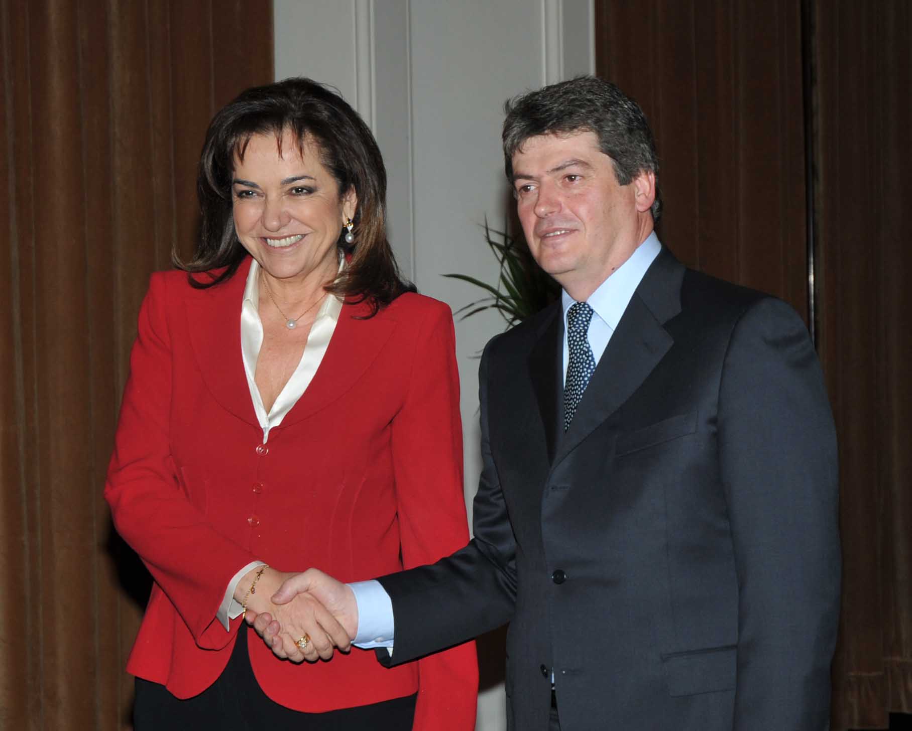 OSCE Chairperson-in-Office, Greek Foreign Minister Dora Bakoyannis (left), meets Albanian President Bamir Topi during a visit to Tirana, 9 February 2009.