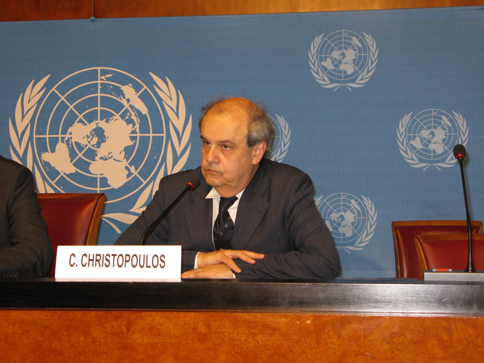 Ambassador Charalampos Christopoulos, Special Representative of the OSCE Chairperson-in-Office, speaking at a news conference after the fourth round of the Geneva Discussions, 18 February 2009.