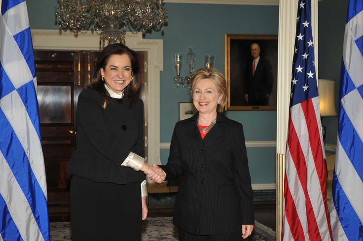 OSCE Chairperson-in-Office and Greek Foreign Minister Dora Bakoyannis (left) meets US Secretary of State Hillary Clinton, Washington, 25 February 2009.