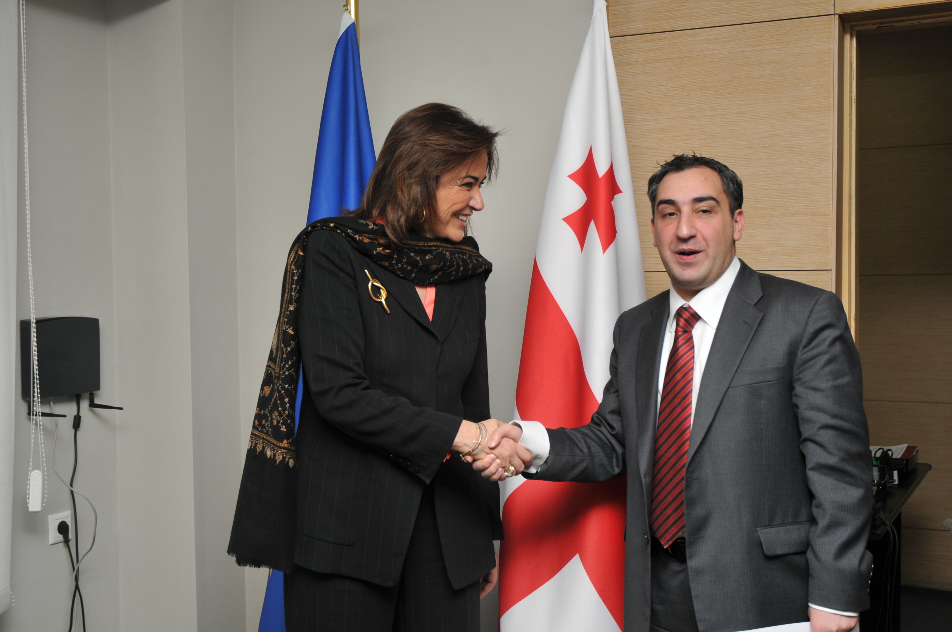 OSCE Chairperson-in-Office, Greek Foreign Minister Dora Bakoyannis (left), meets the Prime Minister of Georgia, Nika Gilauri, in Tbilisi, 23 March 2009.