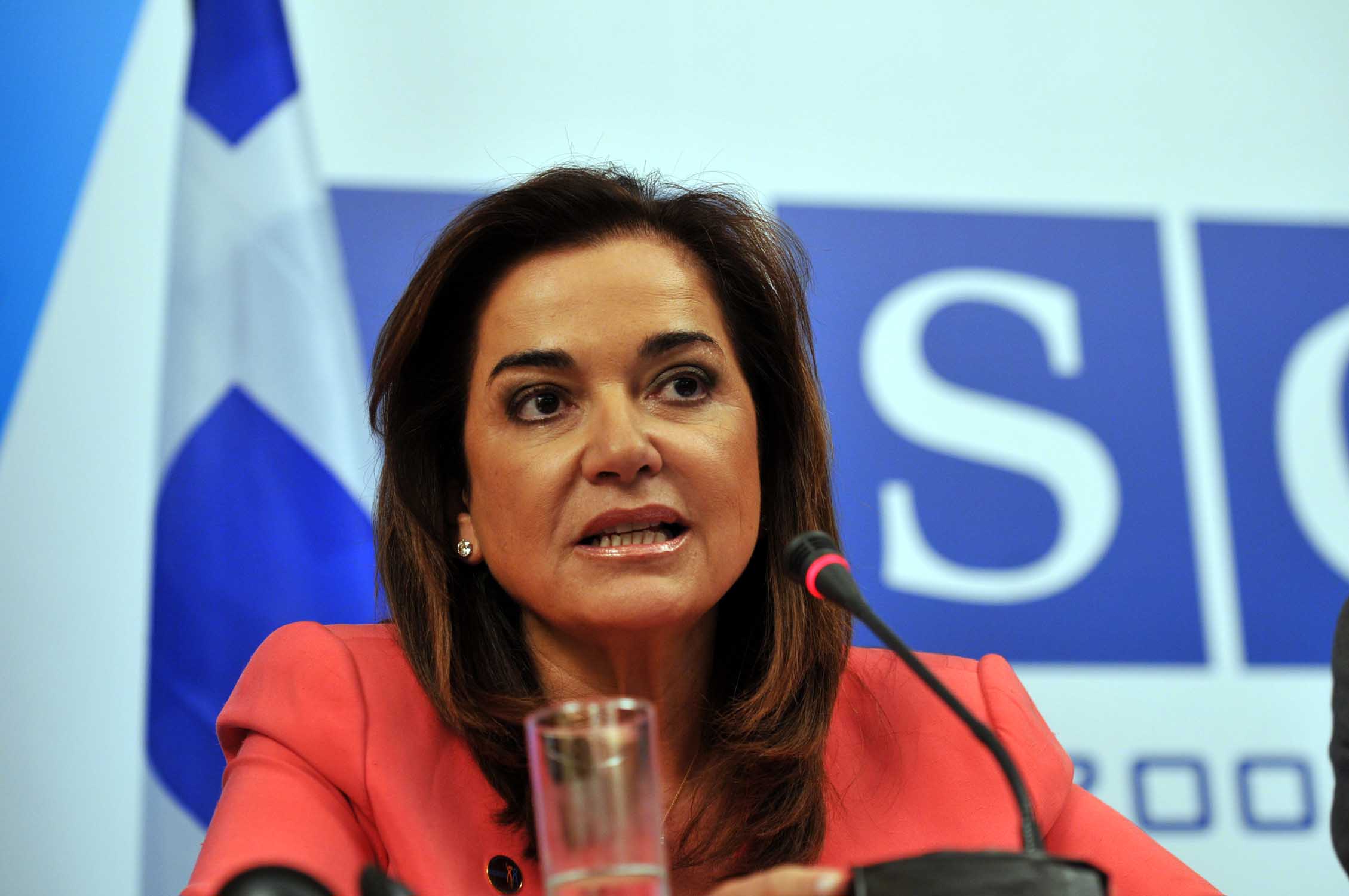OSCE Chairperson-in-Office and Greek Foreign Minister Dora Bakoyannis addresses the media at the informal ministerial meeting in Corfu, 27-28 June 2009.