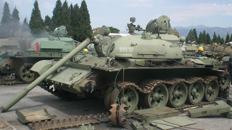 An Inspection Team from Montenegro inspects the 204th Storage Site at Cerovac, Srbia in June 2008. On the left side Howitzers H 155 mm M-1, on the right side Anti-Tank Guns T-100 mm T 12/MT 12.