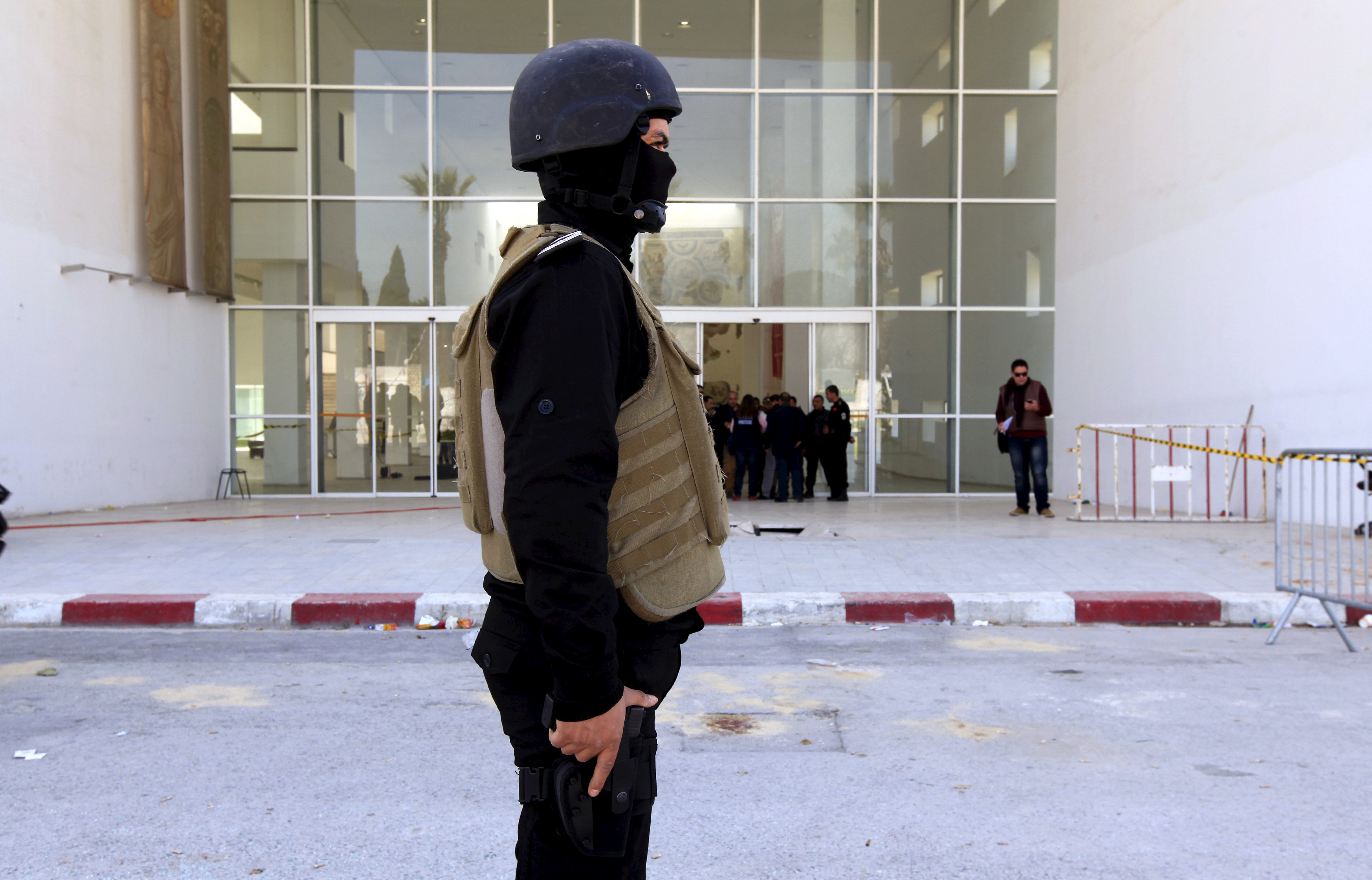 A policeman guards the entrance of the Bardo museum in Tunis, 19 March 2015