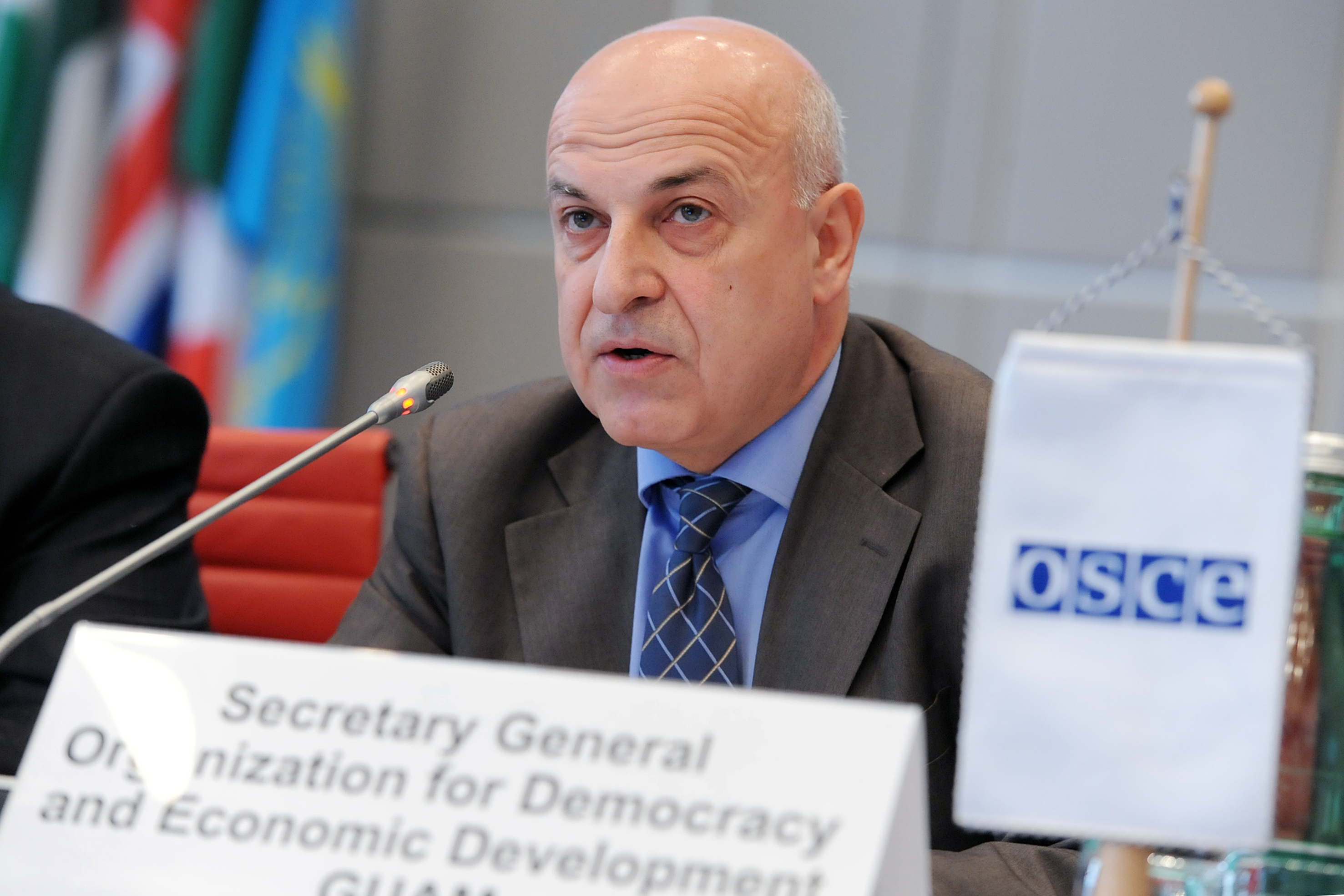 Valeri Chechelashvili, the Secretary General of the Organization for Democracy and Economic Development-GUAM during an OSCE Permanent Council meeting, Vienna, 30 April 2015.