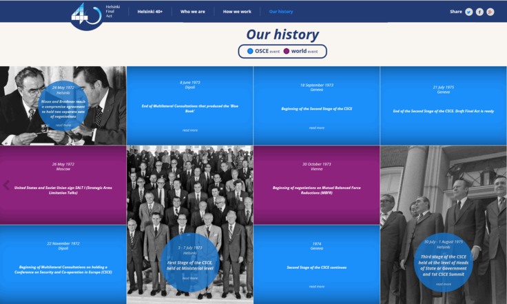 In a historic demonstration of multilateral consensus, the 1975 Helsinki Final Act saw the heads of 35 States (the NATO countries, the Warsaw Pact countries, neutral and non-aligned States) commit themselves to mutually beneficial dialogue. The drive: to bridge the East-West divide, to move from mere “détente” to actual “rapprochement.” That commitment, in the 1990s, led to the establishment of the Conference for Security and Co-operation in Europe which later became the Organisation for Security and Cooperation in Europe (OSCE). In 2015, the OSCE marks 40 years since the signing of the Helsinki Final Act.