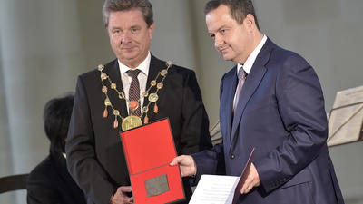 MAGDEBURG, Germany, 19 September 2015 - The OSCE Troika, represented by the current, the previous and the incoming Chairperson-in-Office - Serbia’s Foreign Minister Ivica Dačić, Swiss Foreign Minister Didier Burkhalter, and German Foreign Minister Frank-Walter Steinmeier, held a meeting today and later attended the ceremony at which the OSCE was honoured with the prestigious “Emperor-Otto Award” 2015 by the Mayor of the City of Magdeburg.