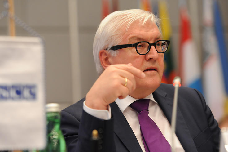2016 OSCE Chairperson-in-Office, German Federal Minister for Foreign Affairs Frank-Walter Steinmeier, during a Permanent Council meeting, Vienna, 14 January 2016.