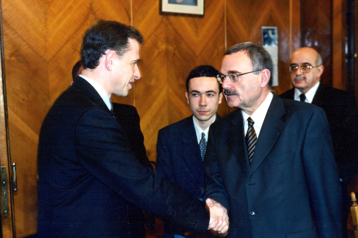 Geoana (left), meets with the Prime Minister of Azerbaijan, Mr.