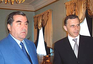 Geoana (right), meets with the President of Tajikistan, Emomali
