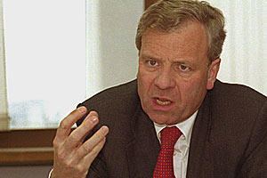 The then OSCE Chairman-in-Office Jaap de Hoop Scheffer met political leaders in Pristina, 23 April 2003.